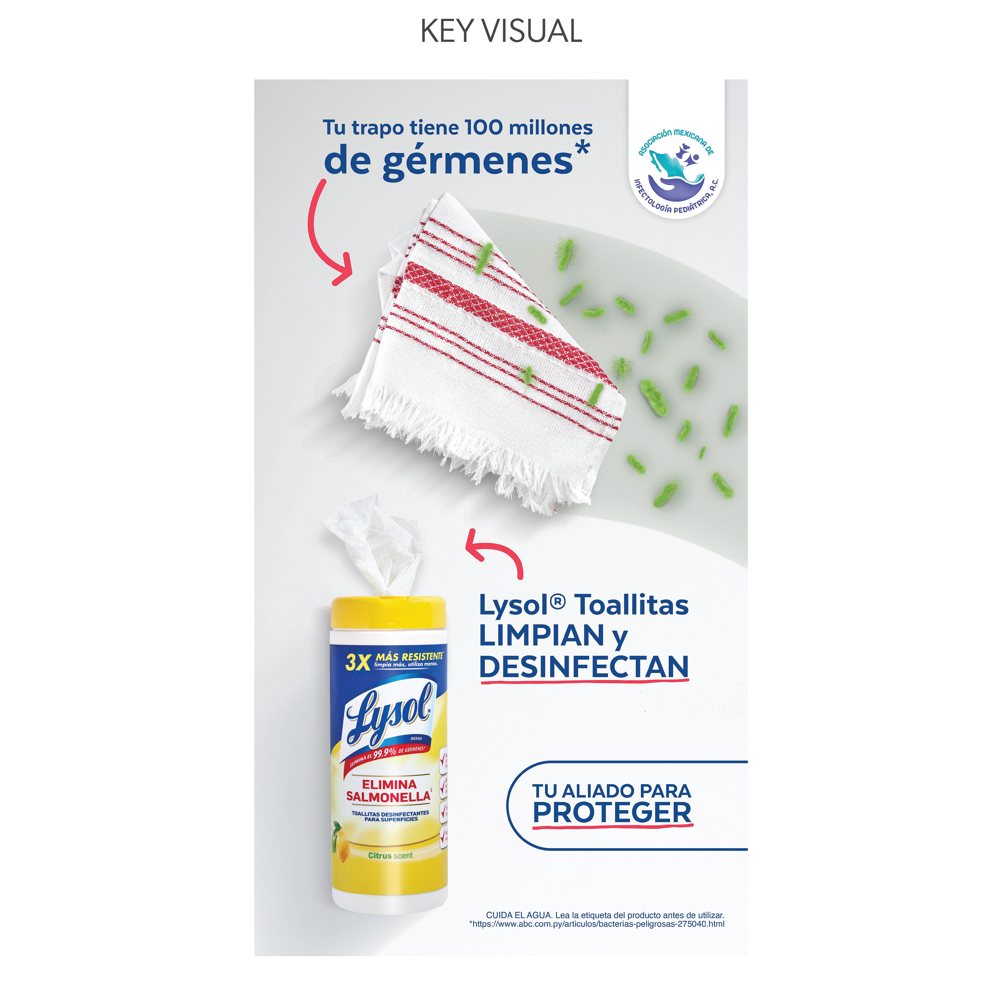 Lysol. Tu trapo transporta millones de gérmenes.
